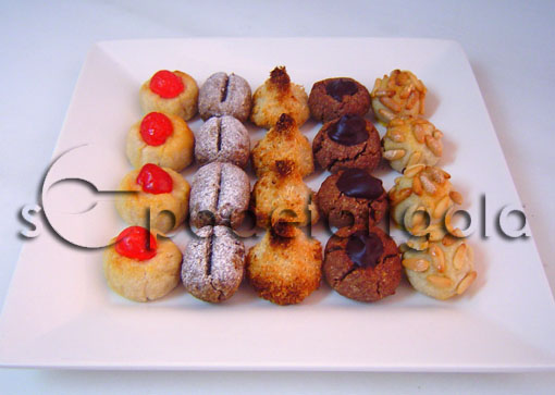 De xocolata Barregem la massa amb cacau en pols fins aconseguir una mescla de color marró uniforme. Es formen petites boles i amb el dit petit, es marca un petit forat al centre. Quan estan cuits i freds si tira al forat que hem fet abans una mica de xocolata fondant desfeta al microones.