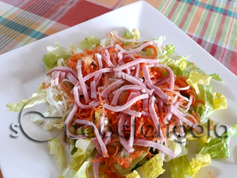 1 enciam iceberg o llarg • 1 pot pastanaga ratllada en vinagre • 1 pot api ratllat en vinagre • 200 gr de pernil dolç