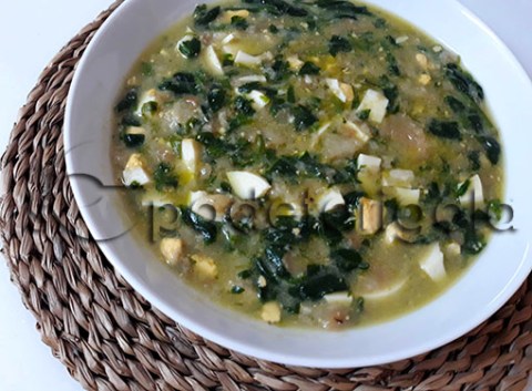 12 llesquetes de pa de barra millor seques • 300 g. d’espinacs crus • 4 grans d’all • 4 ous durs • formatge rallat • oli d’oliva • sal o una pastilla de brou concentrat.