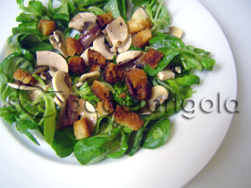 1 bossa de canonges • 1 safata de xampinyons crus • 1 llauna d’anxoves • pa fregit • vinagreta de mel