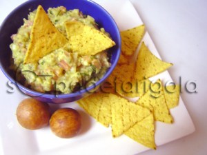 2 alvocats madurs • 1 ceba petita • 3 tomàquets vermells forts, els de pera hi van molt bé • el suc de mitja llimona • coriandre fresc • sal • 1 bossa de «nachos«.