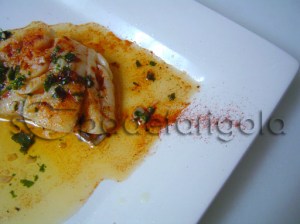 Netegem bé les sípies i les tallem a trossets petits, la melsa també. La tinta en aquesta recepta no la farem servir.